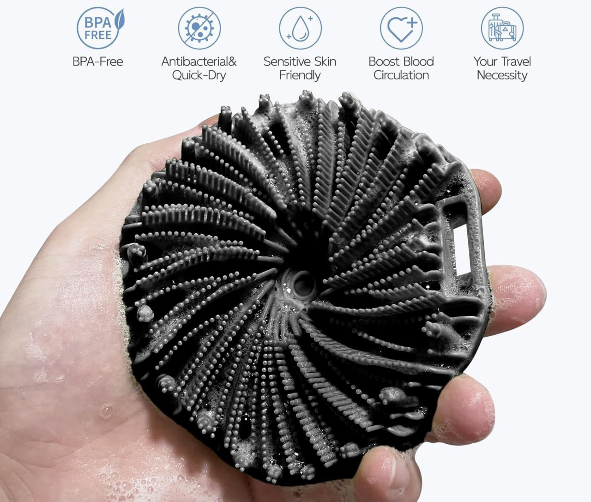 • ECO-FRIENDLY SILICONE: Crafted from safe and durable food-grade silicone, our body bath scrubber is gentle on your skin while still offering effective exfoliation and cleansing.