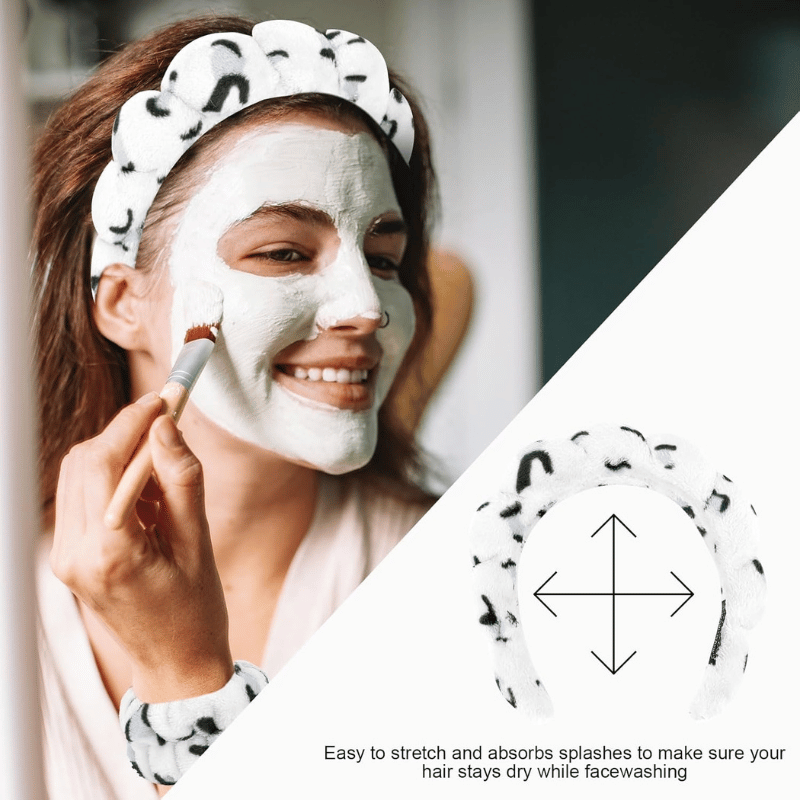 - Soft Material: The puffy spa headband is made of premium terry cloth fabric and sponge with adorable clouds shape design. The 1pcs skin care headbands and 4pcs spa wristbands are made of soft microfiber, super comfortable to wear.